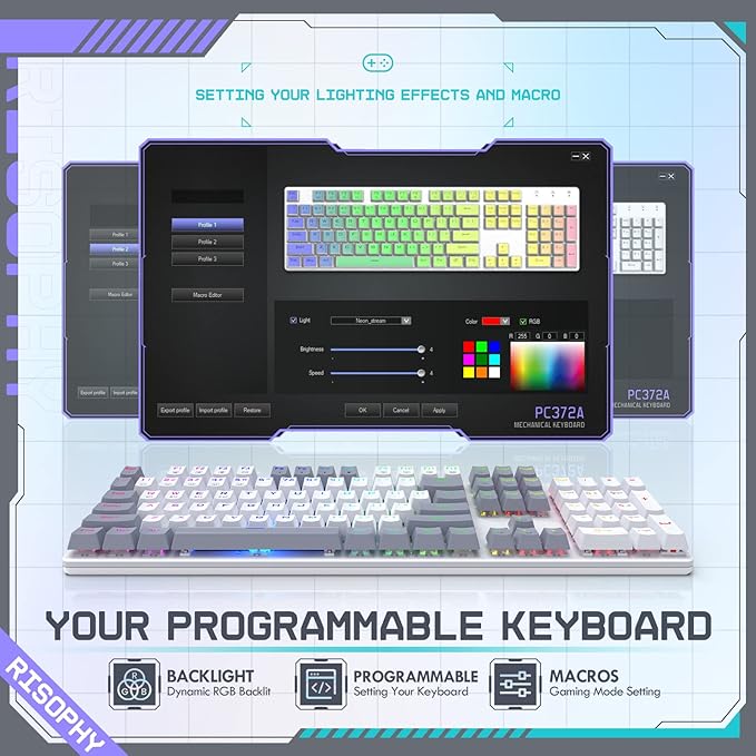 - ใ๐๐จ๐จ๐ฅ ๐๐๐ ๐๐๐๐ค๐ฅ๐ข๐ญ ๐๐๐ฒ๐๐จ๐๐ซ๐ใWith 20 RGB backlight modes, 16.8 million colors selection, 5 brightness levels, and per-key customizable functions, this wireless gaming keyboard can enhance your gameplay atmosphere at its maximum, and the light can also be turned off if you donโt need it.