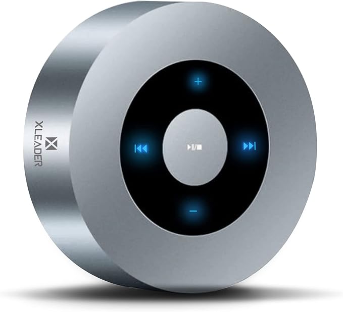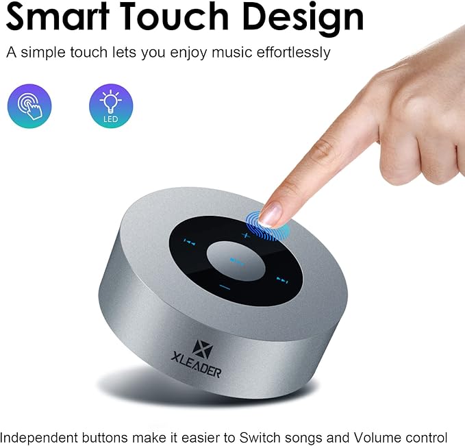 XLEADER Travel Case Packed, Upgraded, Bluetooth Wireless Speaker, Custom Bass Radiator, LED Touch Design, Tiny Pocket Speaker, Mic/TF Card/Aux, 15H Playtime, for Travel Kitchen Office, Space Silver