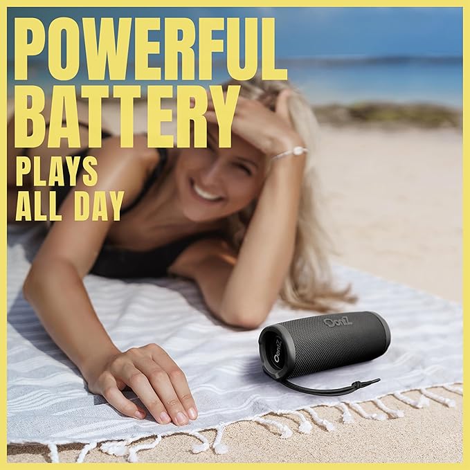OontZ Cylinder Portable Bluetooth Speaker 5.0 - IPX7 Waterproof, 14W Enhanced Sound, 20-Hr Battery, 100ft Wireless Range, Deep Bass and Clear Audio, Durable Shower Speaker for Pool or Beach (Black)