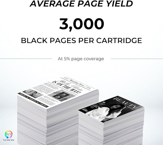 - Page Yield: Up to 3000 pages at 5% coverage (Letter/A4) per cartridge.