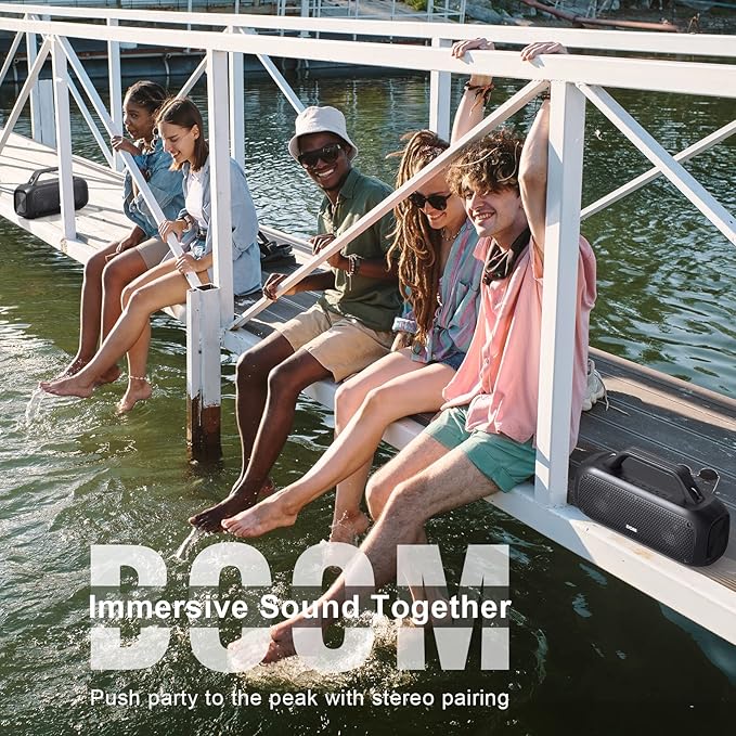 DOSS Extreme Boom Outdoor Bluetooth Speaker with 60W Mighty Sound, Deep Bass, 30H Playtime,10400mAh Power Bank, BT 5.3, IPX6 Waterproof, Portable Strap for Camping, Pool, Beach, Garage, Work