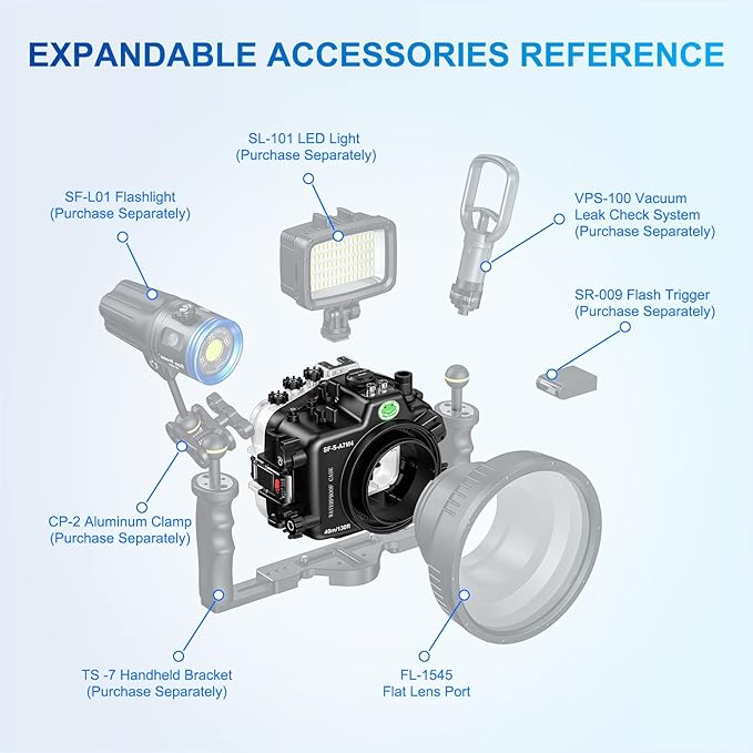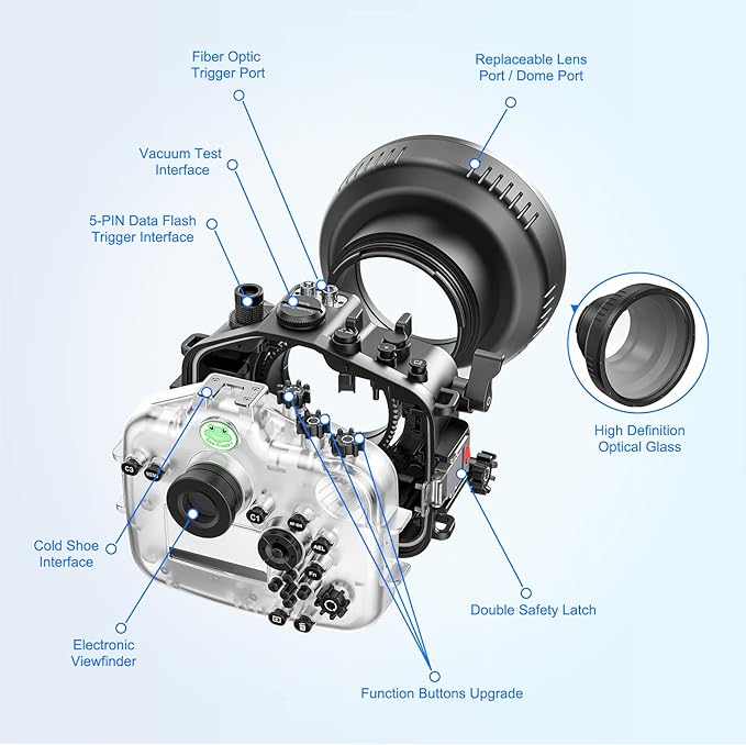 - · 【 Compatibility 】 :This underwater photography housing fits for Sony A7M4 16-35MM. It is best gift for outdoor enthusiast.