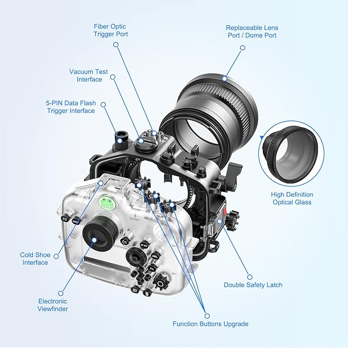 - · 【 Compatibility 】 :This underwater photography housing fits for Sony A7M4 28-70MM. It is best gift for outdoor enthusiast.