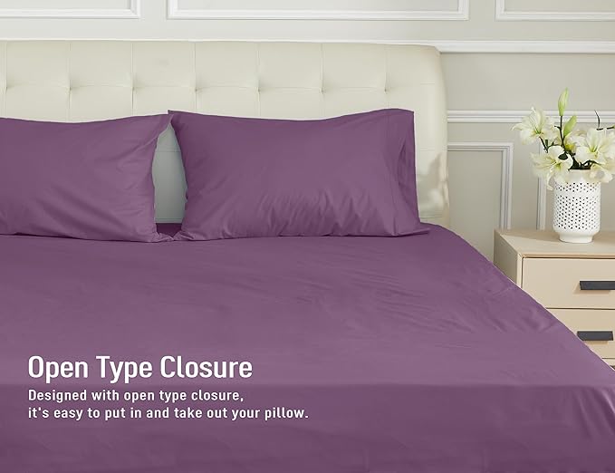 Sunflower Queen Pillowcases Set of 2, 100% Cotton Queen Size Pillow Cases 2, 20×30 inches Dark Purple, Soft and Breathable