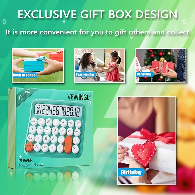 VEWINGL Mechanical Switch Calculator, 12 Digit Large LCD Display and Buttons, Great for Everyday Life and Basic Office Work, with Battery
