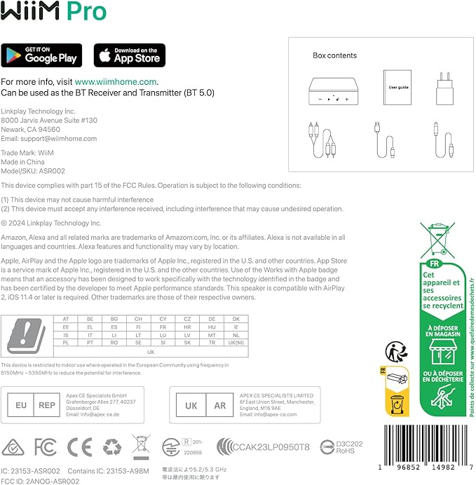 - PLEASE NOTE: AirPlay Receiver Only – WiiM Pro can receive AirPlay streams but cannot transmit AirPlay to other AirPlay-enabled speakers or devices.