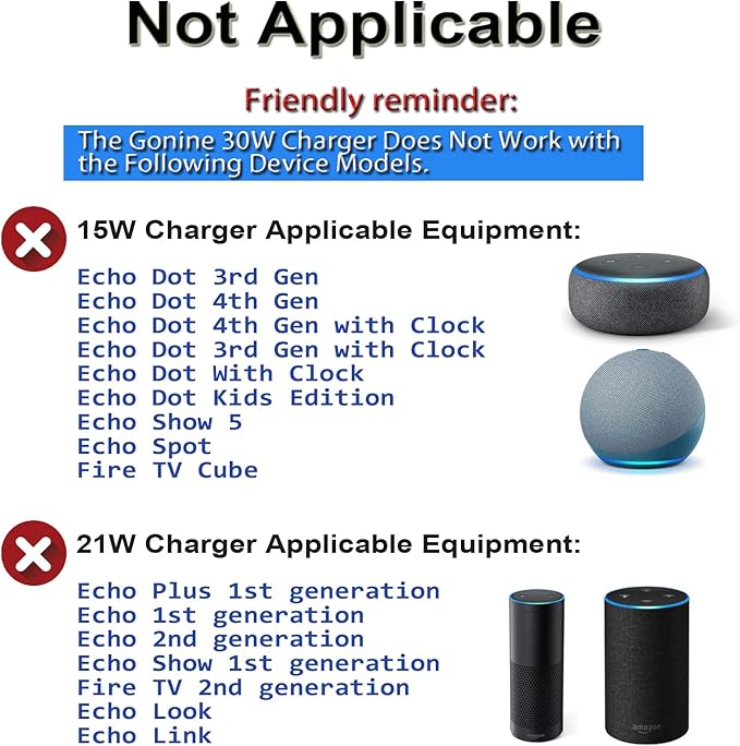 - 30W Charger Compatible with: This 30w charger power adapter compatible for Alexa voice echo show 21, Alexa Echo Show 8 (3rd Gen 2023 ), Echo Show 8 (2nd Gen, 2021 release), Alexa Echo Show 8 (1st Gen, 2019 release), Echo Show 10 (1st Gen), Echo Show 10 (3rd Gen), Echo Show 15, Show 15 2nd generation, Echo Show (2nd Gen), Echo Plus (2nd Gen), echo 3rd / 4th gen smart speaker Power Adaptor.
