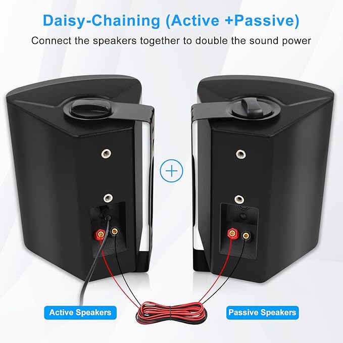 - 【Strong Bluetooth 5.0 Signal】:bluetooth 5.0 technology provides greater wireless range 65ft and efficient connection to any Bluetooth devices like iPhone, android mobile phone, iPod, tablet, PC. Built-in Bluetooth amplifier with stereo surround sound can connect normally under difficult conditions and the signal is not disturbed. it Includes (1) active and (1) passive 6.5”2-way indoor outdoor blutooth speakers