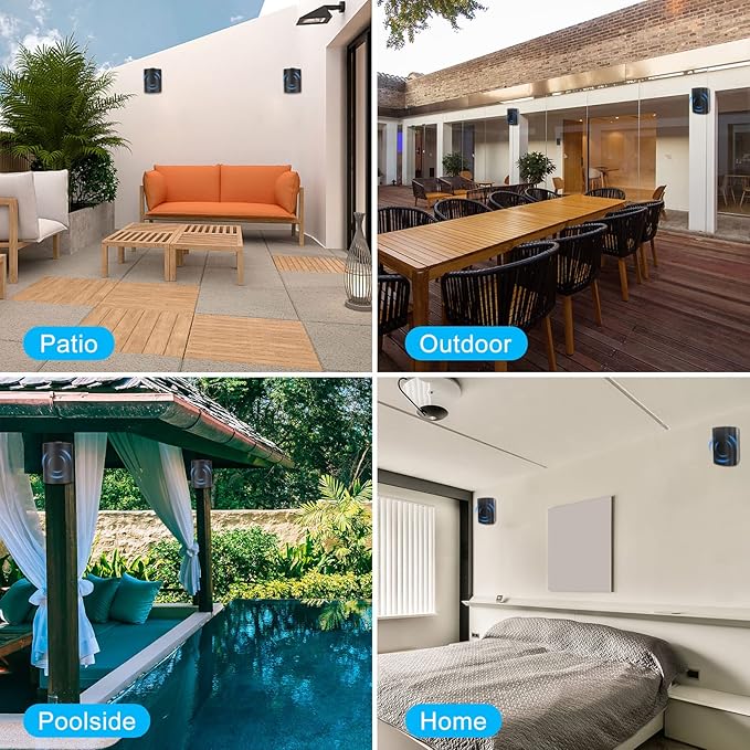 - 【WATERPROOF CONSTRUCTION】:With a rating of IP44, the Wall mount speakers are made with heavy-duty ABS construction and are marine grade waterproof making them to use in any open places.Excellent for use on boats/ marine/ decks/ patios/ poolside/ outdoors.Product Dimensions (L x W x H):11.61" (L) x 8.46" (W) x7.68"(H).Installs easily on walls and ceiling