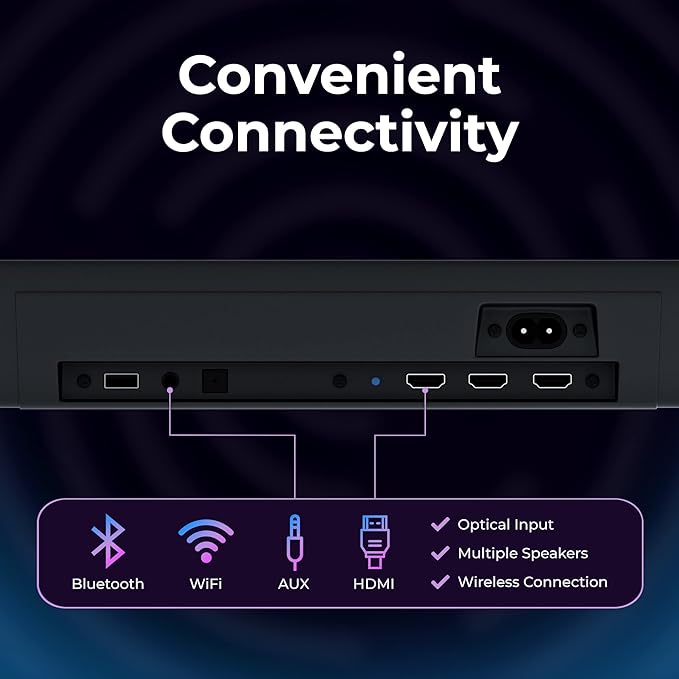 - SMART SOUNDBAR. PERFECT SUBWOOFERS. CINEMATIC SOUND β 2.1 channels make soundtracks richer, effects more thunderous, and dialogue clearer. The wireless subwoofer adds impact to every explosion and every beat. This is the best sound bars TV!