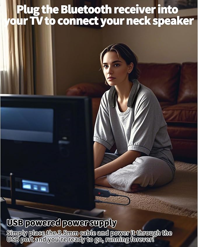 Bluetooth Speaker, Portable Wireless Neckband Home TV Speakers, Theater Stereo Surround Sound with Microphone, Wireless Loudspeaker for Outdoor Sports with Receiver