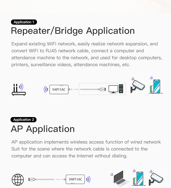 Vonets VAP11AC 2.4G+5G WiFi Bridge/Wireless Repeater/Wired to WiFi Adapter 1200Mbps with RJ45 Ethernet Cable Good Partner for Security System, IP Device