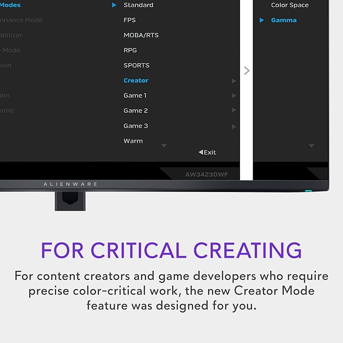 - FOR CRITICAL CREATING: For content creators and game developers who require precise color-critical work, the new Creator Mode feature was designed for you. This OSD menu option allows you the flexibility to choose between the native (DCI-P3) and the sRGB color space, depending on your work needs, and the ability to adjust the gamma settings.