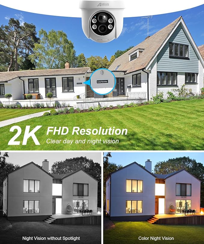 - Crisp Image & 360°View: ANRAN Solar Powered Camera takes a panoramic shooting and make sure no blind spots or zone,and get great video quality. Great IR night vision in darkness as well as Color night vision enabled by 4 powerful spotlights.
