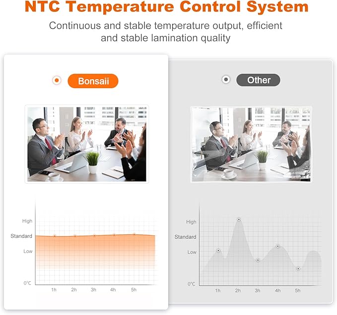 - 【NTC Temperature Control】 The Bonsaii A3 Laminator Machine features NTC temperature control, ensuring a stable laminating effect. With precise temperature control, you can achieve optimal laminating results.