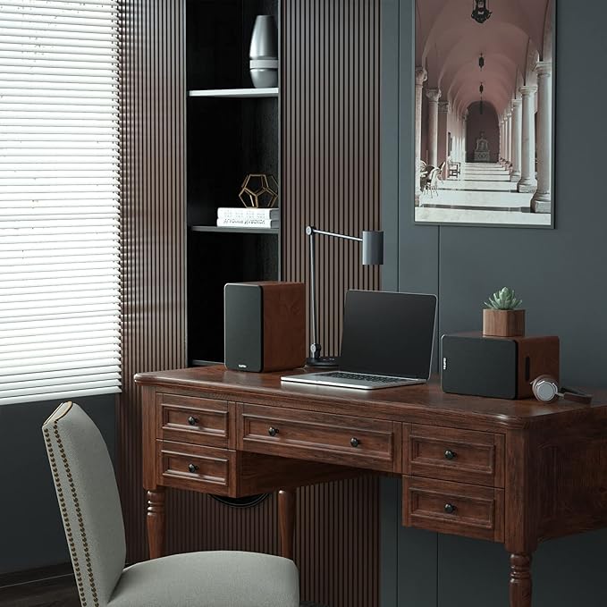 - High-Quality Audio and 5.2-Inch Woofer: Experience rich, powerful sound with deep bass and clear, detailed audio thanks to advanced audio technology in our bookshelf speakers. And the 5.2-inch woofer is larger than the standard powered bookshelf speaker driver, allowing for a deeper and more powerful bass response, resulting in a more immersive and dynamic listening experience.