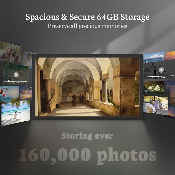 - Professional Large Digital Picture Frame: This photo frame electronic showcasing your art collection and cherished memories with sharp datails and extra-clear images for an even more expansive and enriching viewing experience. The digital picture frame large enable you to share video clips and photos securely and privately via WiFi from anywhere via VPhoto app & email, you can share the digital frames for photos code with your friends, and invite them to add photos to the same frame, enjoy and view everyone's pictures, which makes the photos displayed in one place to bring all precious moments to alive.
