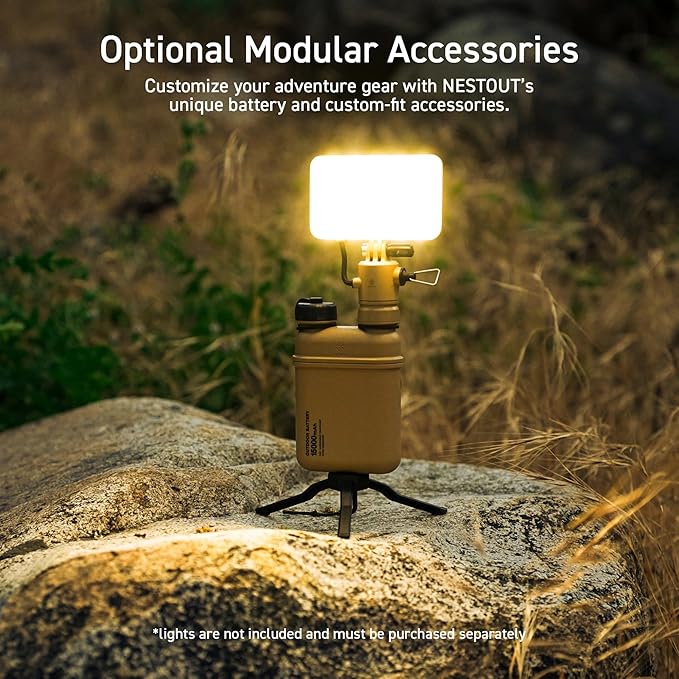 - MODULAR ACCESSORIES - Use the battery with the available NESTOUT Accessories like the LAMP-1 lantern and FLASH-1 LED Panel that are custom made to exclusively fit the power banks.