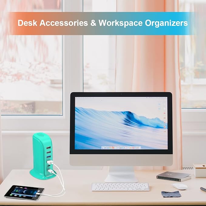 - Desktop cable management: Charging station 6 ports with 5 ft power cord; Compact, Lightweight, Space saving, Portable, Versatile, USB charging hub for 6 devices simultaneously.