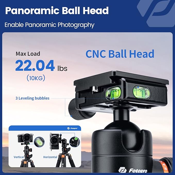 Fotopro 68 inch Camera 360 Horizontal Tripod Monopod with Center Column and Ball Head, Overhead Camera Tripod Mount for DSLR Camera, Video Camcorder, for Travel and Work