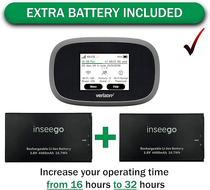 - Included Components : Hotspot Device with 1 Stock Battery and 1 Extra Battery, QC Charger with USB Type C Cable, Verizon sim card (requires data plan) Hotspot Device with 1 Stock Battery and 1 Extra Battery, QC Charger with USB Type C Cable, Verizon sim card (requires data plan)