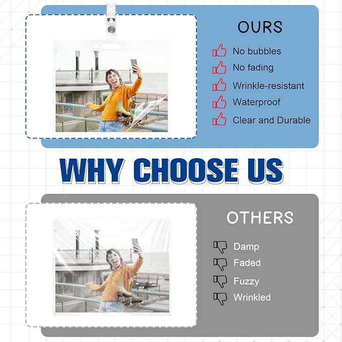 - Transparent with Slotted Hole: Both sides are transparent, the content of the thermal laminate pouch tags kit is clearly visible, The Slot Hole Works with Any Lanyard, Badge Clip, Badge Reel, or ID Holder, no need to punch holes, directly plastic sealed. Make Funny, One of a Kind, Specialty, Unique Gifts or Make with Letter Initial.