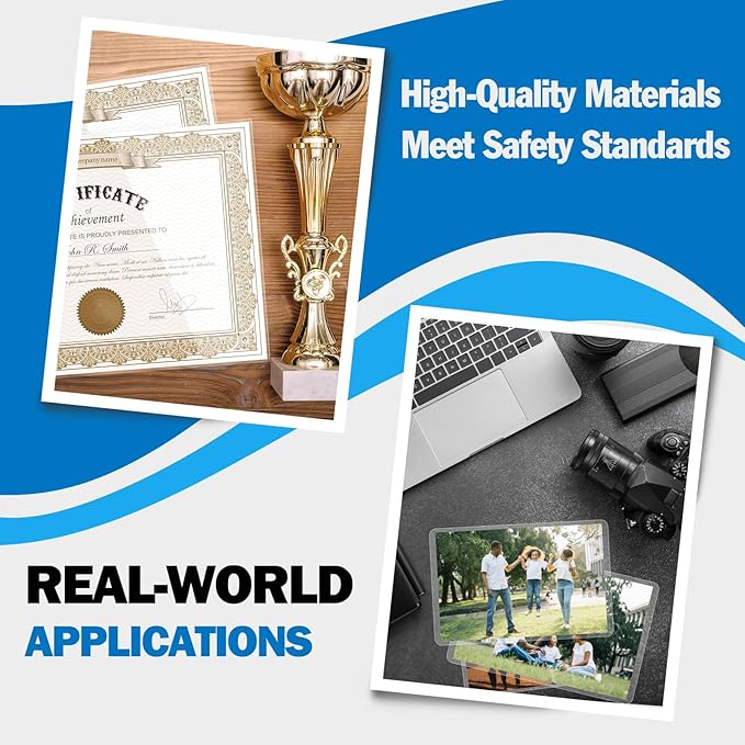 - HIGH TRANSPARENCY AND GLOSSY SURFACE Brighten up documents, certificate, Excellent clarity for whatever you laminate
