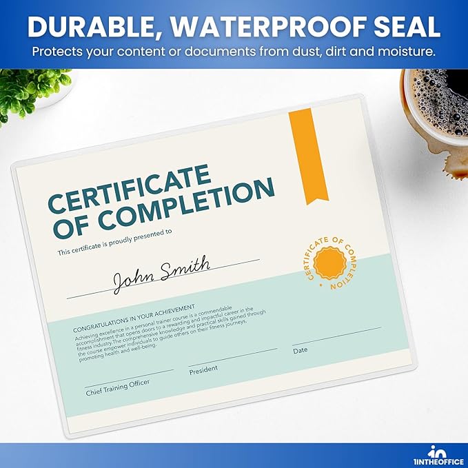- Laminating sheets 5 mil protect frequently handled documents, photos, and certificates from stains, spills, and damage.