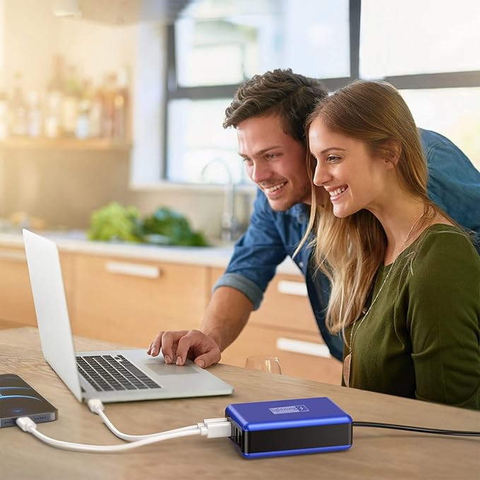 100W USB C Charger, 5 Port USB Tower Charging Hub Fast Charger for iPhone,iPad,MacBook, Super Fast Charging for Samsung, Multi USB Block with Flat Plug, Travel Charger for Multiple Devices, Blue