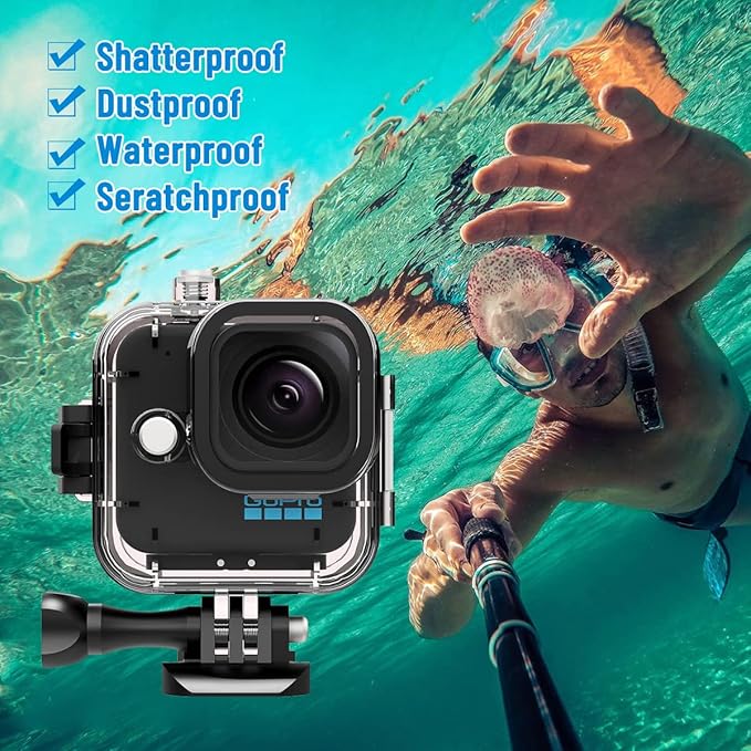 - 👉Professional Compatible: Specially designed for GoPro 11 black mini. Great for diving, surfing and other water sports. PLEASE NOTE: This waterproof case does not have touch screen functionality.