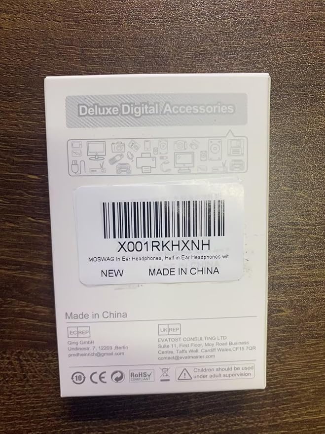 MOSWAG in Ear Headphones, Half in Ear Headphones with Mic Built in Volume Control Suitable for IPad, Android, MP3, Samsung Most 3.5mm Audio Devices