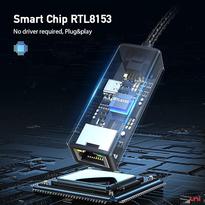 - Plug and Play: The USB C to LAN adapter does not need to install drivers, suitable for Windows 11/10/8.1/8, macOS, iPad OS, Chrome OS and Android systems. Crafted with a braided nylon cable for enhanced durability, the uni Ethernet Adapter features premium aluminum casing for superior heat dissipation. Just plug in and enjoy smooth wired networking.