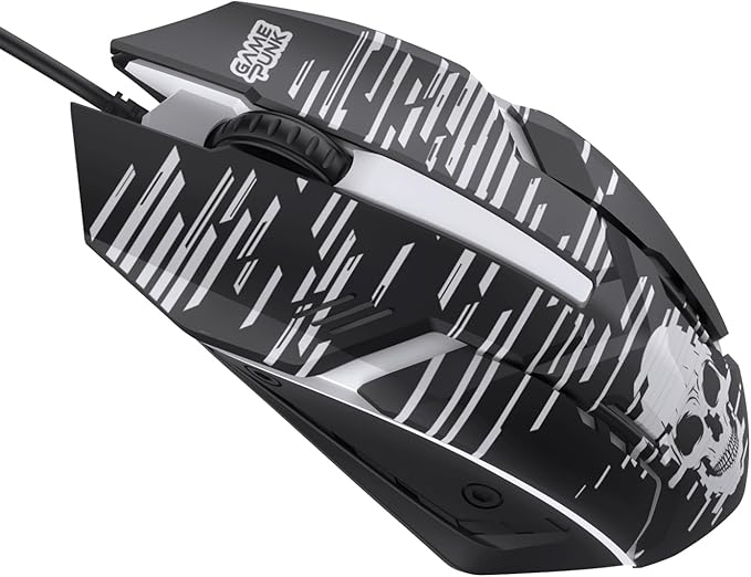 - UNIQUE GAMER DESIGN: This Game Punk optical mouse for laptops, PC, and consoles features an eye-catching abstract design, RGB colors, and a stylized skull image. Pair it with an RGB keyboard and other light-up accessories to build a gaming setup that blends fun and function.