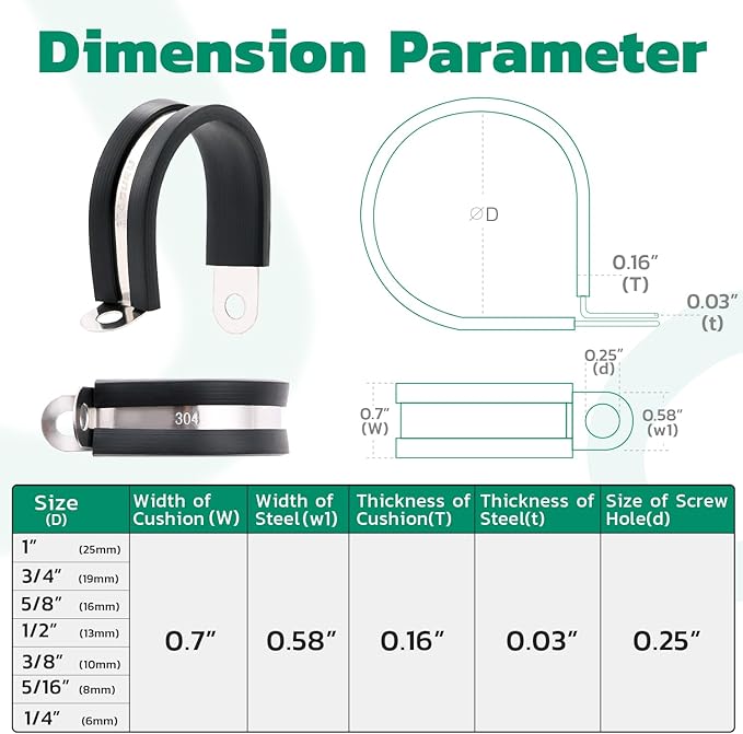 - Thick Metal Strap-Each stainless cable clamp is made of 304 high quality stainless steel with rubber coated cushioned,less susceptible to deformation and bending.Excellent performance in abrasion,moisture,rust and heat resistance even in harsh environments.It is strong and will not rust or break.It is the best choice for indoor and outdoor