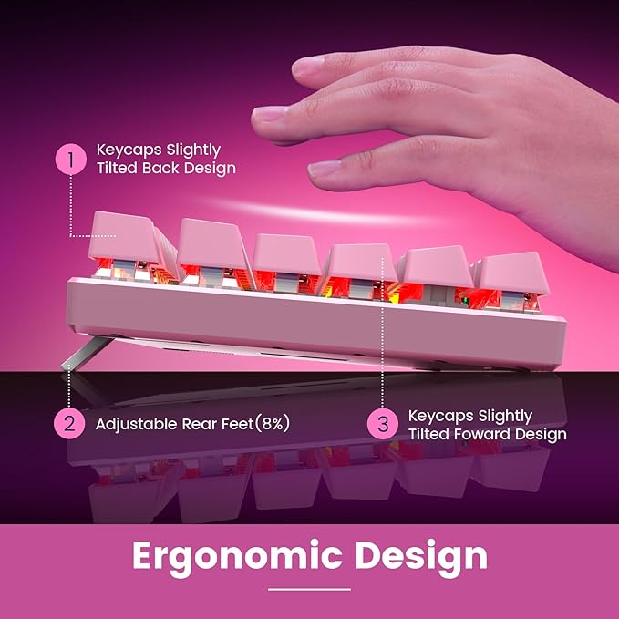 - 【Advanced Ergonomic Comfort】This PC gamer Keyboard adopts a scientific stair-up keycap design that keeps your arms in the most natural state to minimize hand fatigue for long time use.In order to improve your posture and make you more comfortable during use,the wired keyboard comes with 2 strong foldable rear kickstands to slope it.Moreover,the keyboard is non-slip enough because there are 4 rubber padding underneath the keyboard.