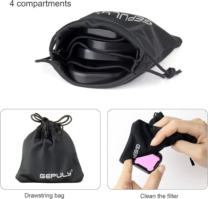 - Perfect Compatibility: These 4-pack underwater diving filters are perfectly compatible with official super suit housing case of GoPro Hero8, HERO9, HERO10, HERO11, HERO 12, HERO13 Black. It can't be used on camera lens directly. Please note: It does not fit for 3rd party housing case, but fits GEPULY's