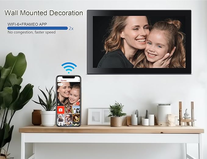 - Share Photos And Video Privately,Safely:With the free app "Frameo" (available for download from Google Play and App Store), you can quickly and easily share your good time with your loved ones. Send photos or small videos (max. 15 seconds) directly to FRAMEO APP from anywhere in the world,the APP lifetime with zero subscription fee, friends and family can enjoy your wonderful moments within seconds on The wifi digital photo frame.