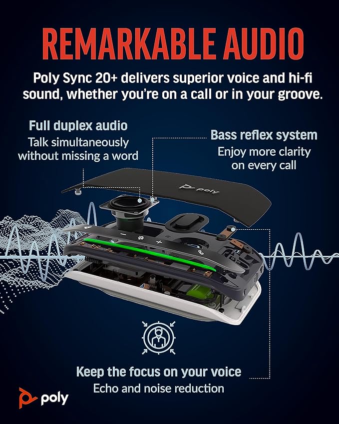 Poly Sync 20+ Personal Portable Bluetooth Speakerphone (Plantronics) - Noise/Echo Reduction - USB-C Bluetooth Adapter - Works w/Teams, Zoom, PC, Mac, Mobile – Amazon Exclusive