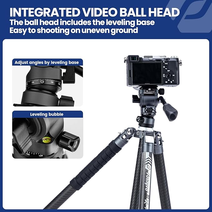 - 3K CARBON FIBER TUBE: The lightweight travel camera tripod equipped with 25mm diameter 3K twill carbon fiber woven tube has higher strength and is more lightweight, while providing stronger support and more stable shooting. It is more durable and corrosion-resistant, with a high-quality feel.