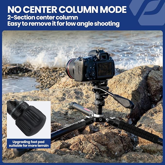 - DETACHABLE CENTER AXIS: Twist out the axis and switch to 'No Axis' mode for low-angle shooting. After disassembling the center axis, it can provide an amazing low-angle for macro photography. The built-in phone clip on the axis allows you to enjoy phone photography anytime.