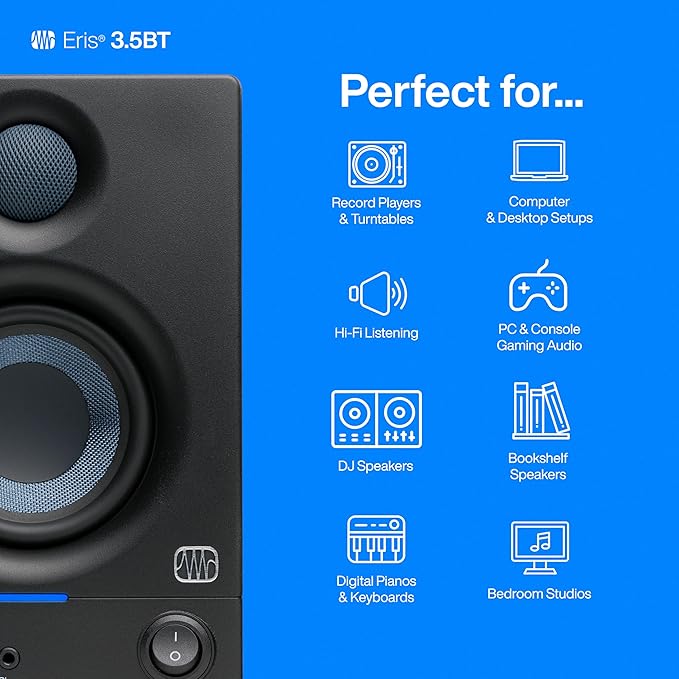 - HONEST. Eris 3.5BT near field studio monitors deliver studio-quality, accurate sound perfect for music production, hi-fi audio listening, or multimedia reference.