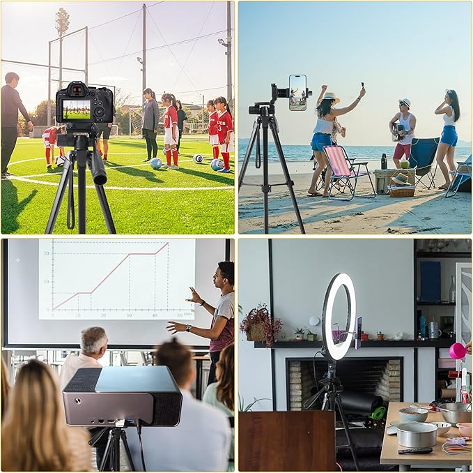 - Tripod for Camera - This camera tripod stand with universal 1/4" screw, compatible with small dslr cameras, gopros, small projectors, webcam, telescope, ring lights, etc