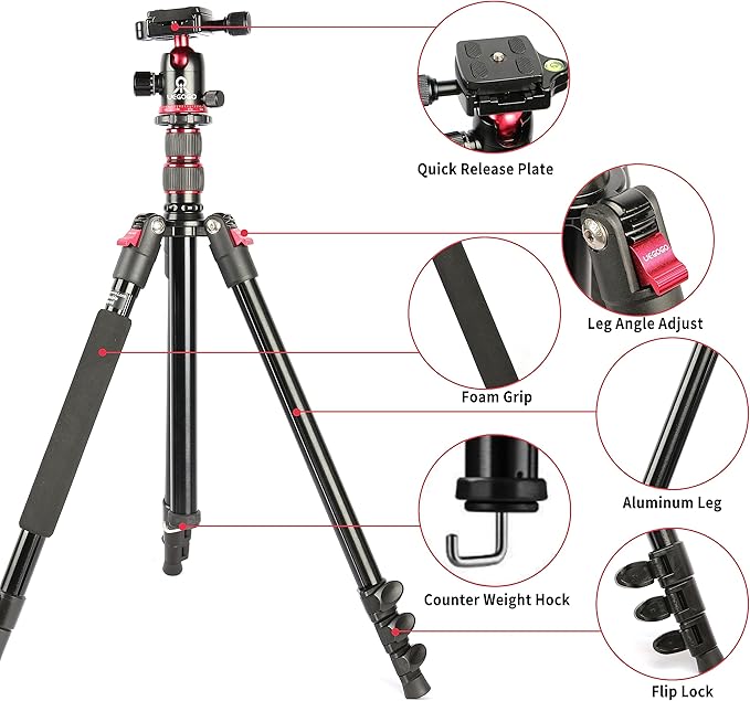 - 2 in 1 Tripod &Monopod: the flexible adjustable tripod features a removable center column and one detachable tripod leg configured.You can easily turn the aluminum tripod into a monopod according to your needs, this tripod is a good companion for your hiking or traveling.