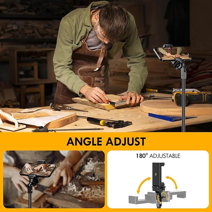 - 【Flexible angle adjust】The 180° rotation head allow you reach a best viewing angle, easy to implement overhead shot, vertical shot, horizontal shot