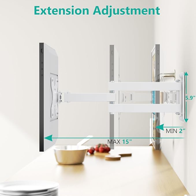 - Space-saving: High-grade Echo Show 21, Echo Show 15 mounting bracket securely holds the device for Echo Show 21 ,Echo show 15 on the wall, extends from 2” to 15” from the wall for the space saving. Simple design complements your modern furniture and keep your room clean and neat