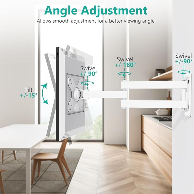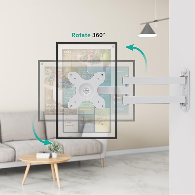 - Fully Adjustment:WALI Wall mount for echo show 21 , echo show 15 allows +15°/-15° tilt, 180° swivel and 360° rotation for better viewing angle. It can be flexibly and smoothly switched from portrait to landscape and viewed from different seating or standing positions
