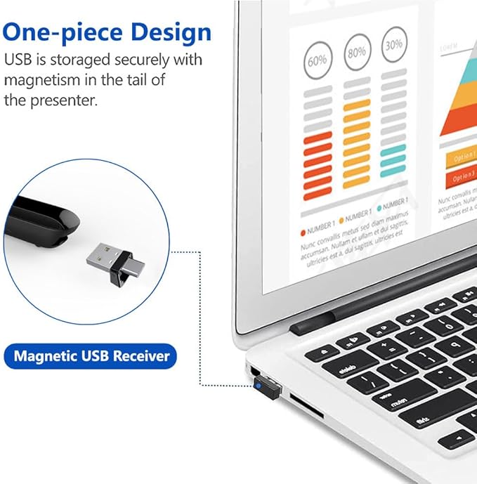 - 【USB & Type-C 2 in 1 Design】With unique dual-head design, you can use this presentation remote on a computer with USB C and USB 2.0 interfaces, compatible with most devices, such as iPad Computer Laptop. This presenter clicker is easy to use, no need to download software, just plug and play.