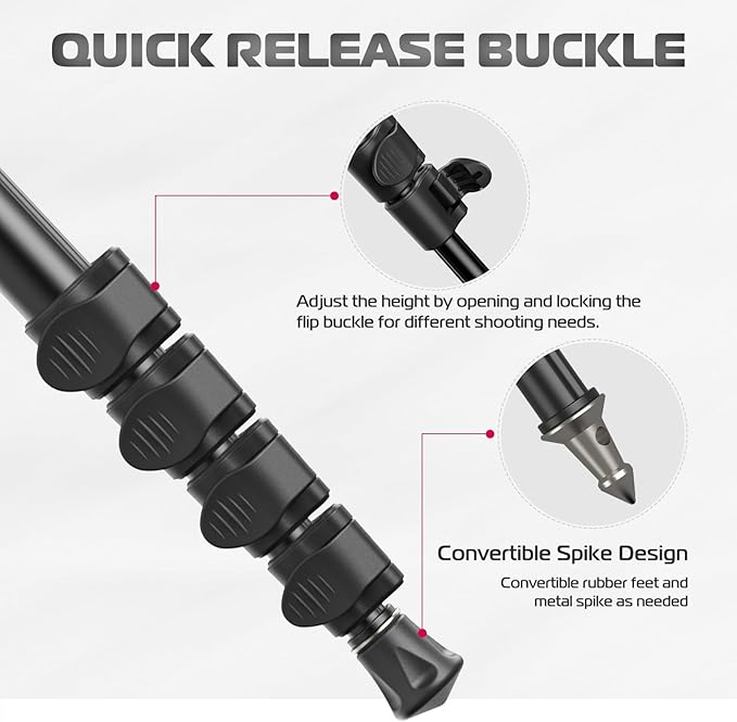 - PORTABLE CAMERA MONOPOD: Elevate your photography and videography with the added flexibility of a camera monopod. This aluminum monopod extends to a maximum height of 61 inches (155cm) and weighs just 0.83 lbs, supports up to 11.02 lbs(5kg). This handy compact monopod is designed for photographers looking to capture images on the go without carrying or setting up a full tripod.