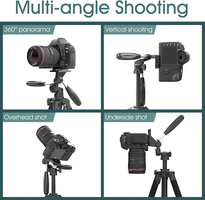 - 【Enhanced Versatility in Photography】 The innovative dual-handle design of our camera tripod introduces a new level of flexibility, enabling seamless adjustments for landscape, portrait, overhead, upward and 360-degree panoramic shots. Experience heightened convenience and superior adaptability in capturing the perfect angle.