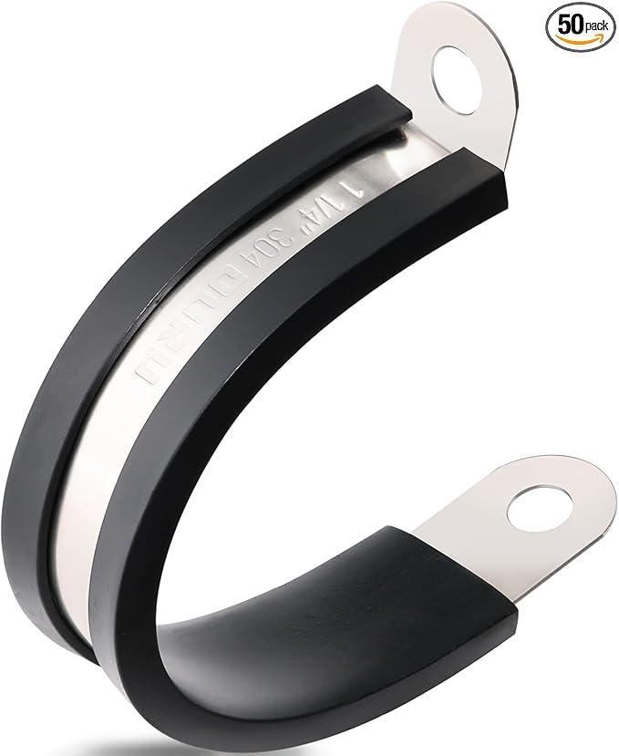 50PCS Cable Clamps 1-1/4 Inch 304 Stainless Steel Cable Clamps Rubber Coated Cushioned Insulated Cable Clamp,Automotive Wire Clamps,Pipe Clamps,Metal Clamp for Tube,Wire Cord Installation(32mm)